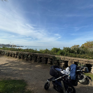 Nach dem Frühstück haben wir Juli in den Kinderwagen gepackt und sind an der Promenade entlang ins Zentrum von Biarritz gelaufen. Diverse Pausen waren nötig, da es Juli zu langweilig im Kinderwagen war und er natürlich auch den schönen Blick aufs Meer genießen wollte. In einem schönen Park mit Aussicht auf den Leuchtturm und die Stadt haben wir Juli gestillt und gewickelt. Insgesamt sieht man mit Baby deutlich weniger in der gleichen Zeit.